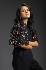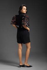 Playsuit With Neon Metallic Sleeve Detail And Belt